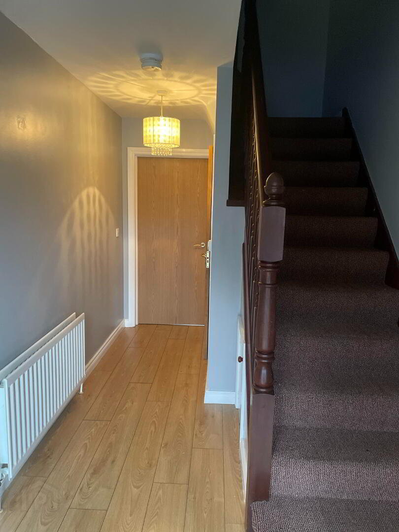 Solid wooden front door with full length glass side panels. Laminated wooden flooring, Double Radiator, Thermostat heating control