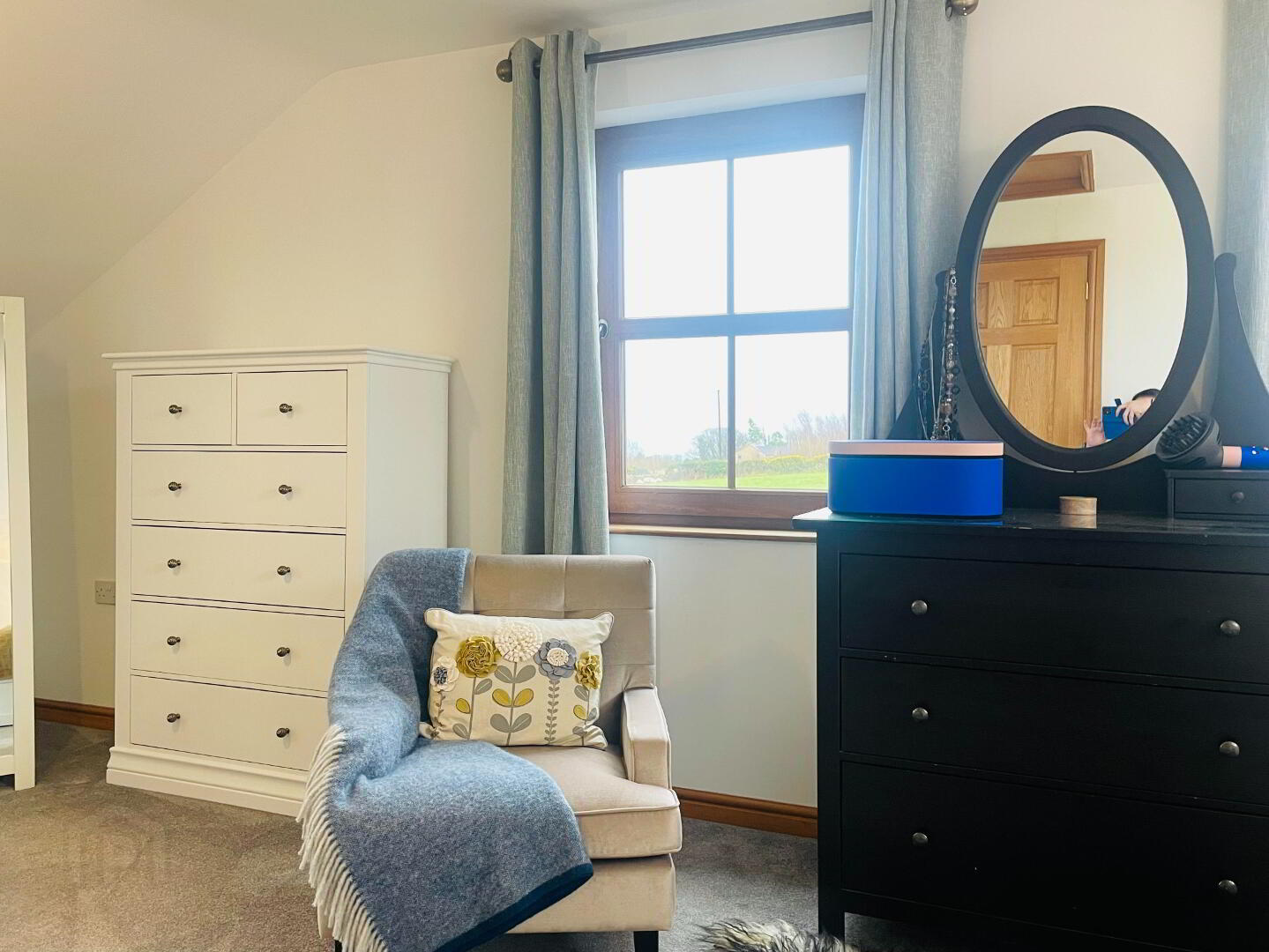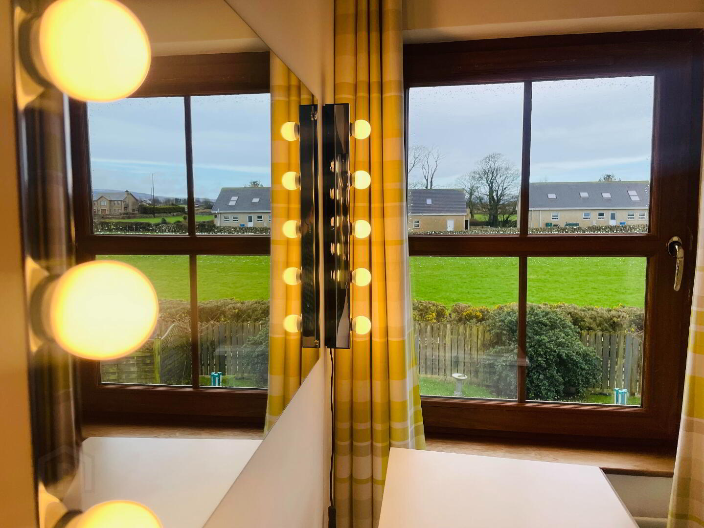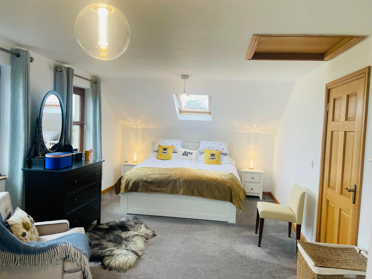 This elegant chic, retreat like Bathroom comes complete with fully tiled flooring and walls, Double walk in shower with Rainfall head and separate shower head, Dual flush WC and Wash hand basin with vanity drawers under. Free standing bath with Mixer taps and shower head hose. The view out this window offers charming countryside views. Large grey radiator and chrome towel radiator. Spotlighting, heated LED Mirror, Extractor fan.