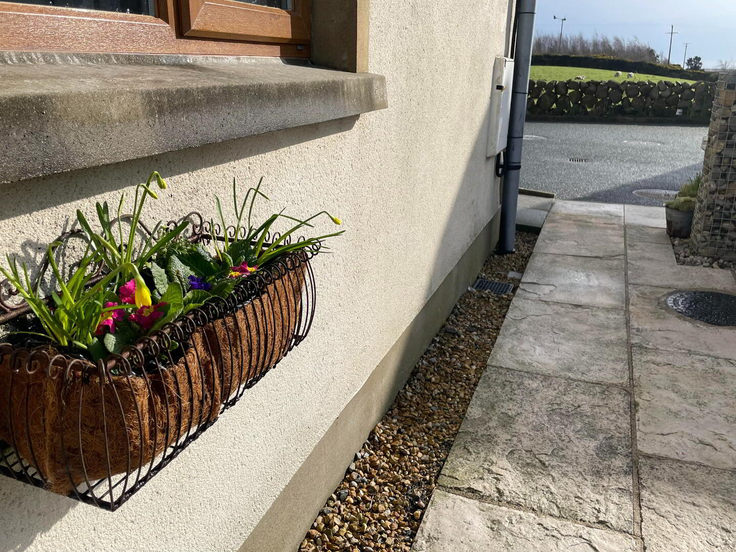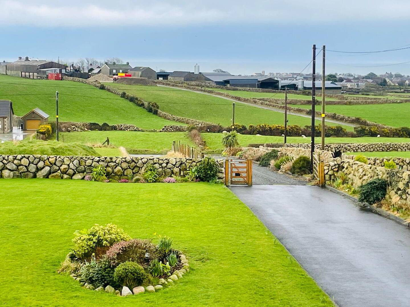 Two large front view windows offering views down to the Irish Sea, Solid wooden flooring, Double Radiators.