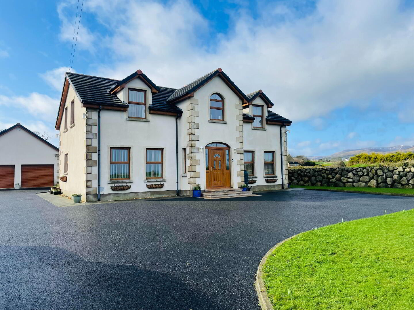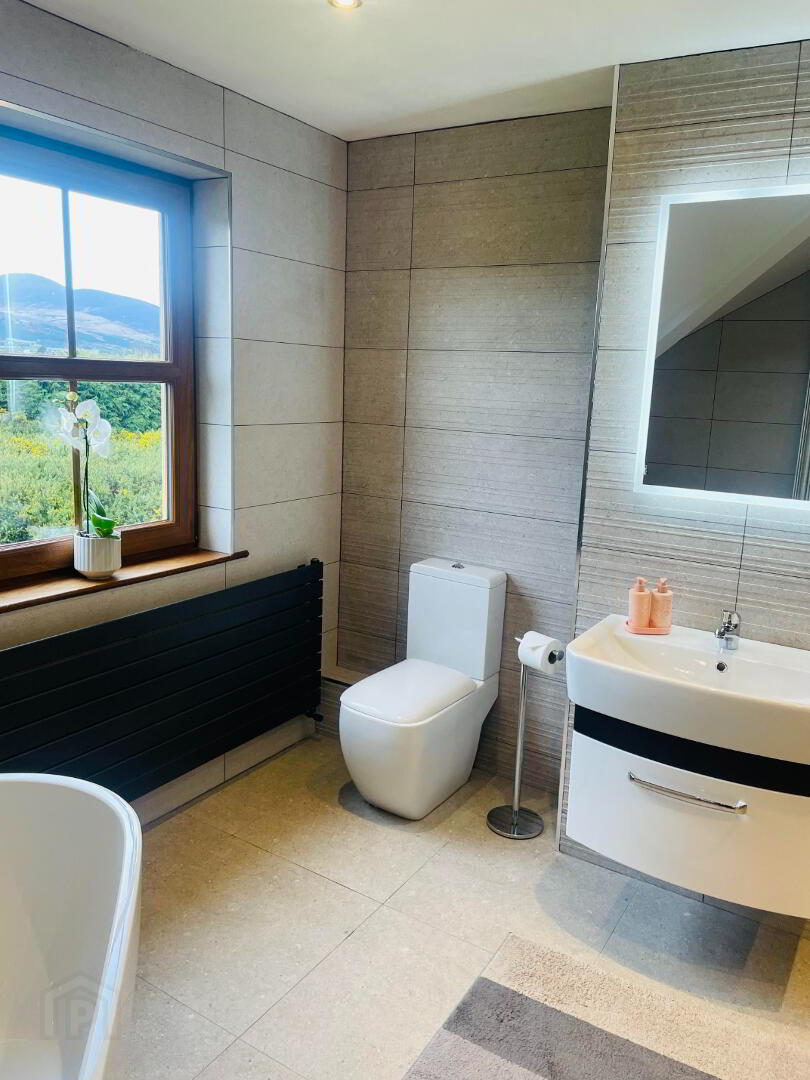 Located in an Area of Outstanding Natural Beauty is this prestige family home set idyllic in the heart of the countryside with sweeping views of rolling emerald hills, dramatic Mourne Mountains peaks, and the shimmering expanse of the sea beyond, this elite luxury residence represents the pinnacle of refined living. Originally constructed in 2007, but internally re-modeled, re-refurbished and occupied in 2013 Designed to harmonise effortlessly with its breathtaking natural surroundings, the home showcases impeccable craftsmanship and has been finished to an exceptional standard throughout. From the moment you step inside, you are greeted by great family living accommodation, lots of large windows that flood the interiors with natural light, and bespoke finishes curated with uncompromising attention to detail. The gourmet kitchen features custom cabinetry, and exquisite stone surfaces, flowing seamlessly into elegant reception spaces ideal for both grand entertaining and intimate gatherings. Lavish bedroom suites offer tranquil retreats, complete with spa-inspired bathrooms and all offering uninterrupted mountain and sea vistas. Outside, beautifully landscaped grounds frame the property, creating a serene sanctuary of privacy and prestige. This is more than a home—it is a statement residence, offering an extraordinary lifestyle in one of the countryside’s most captivating settings right. These photos do not justify what is on offer here and a viewing is highly recommended by Appointment only.