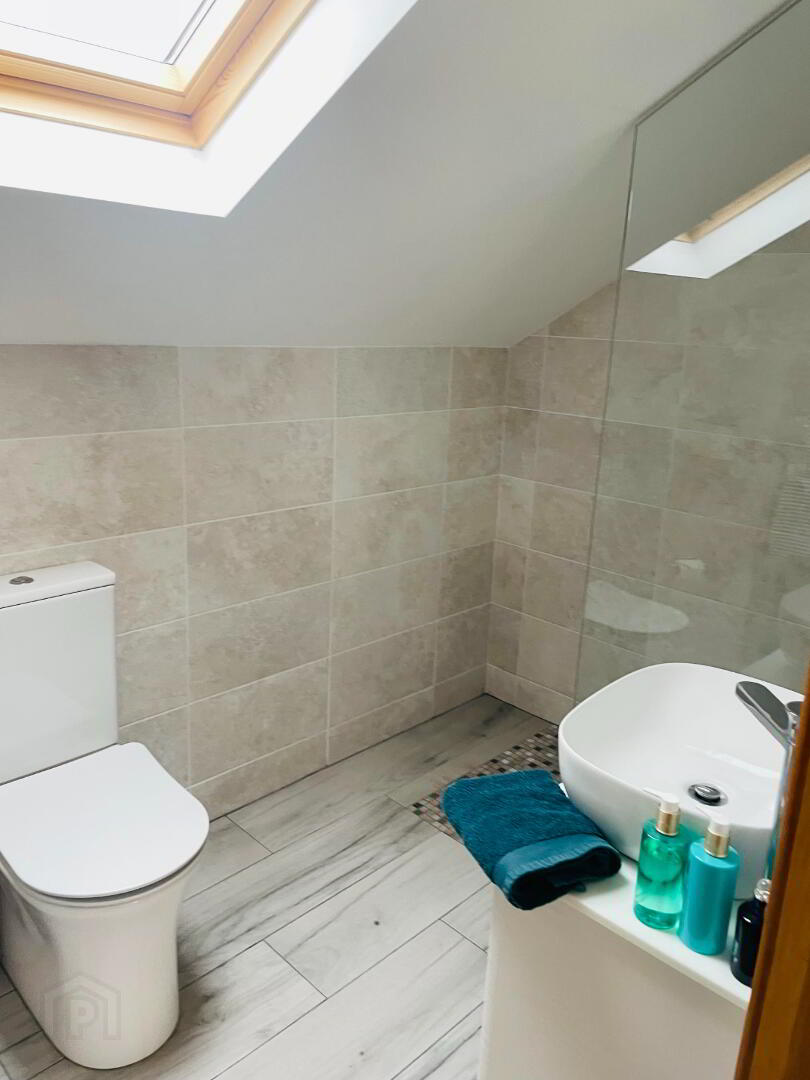 Ensuite: Fully tiled walls and flooring, with decorative design tiling in walk in shower, Dual flush WC, Wash hand basin with vanity drawers under, Chrome Towel Radiator, heated LED Mirror, Extractor fan.