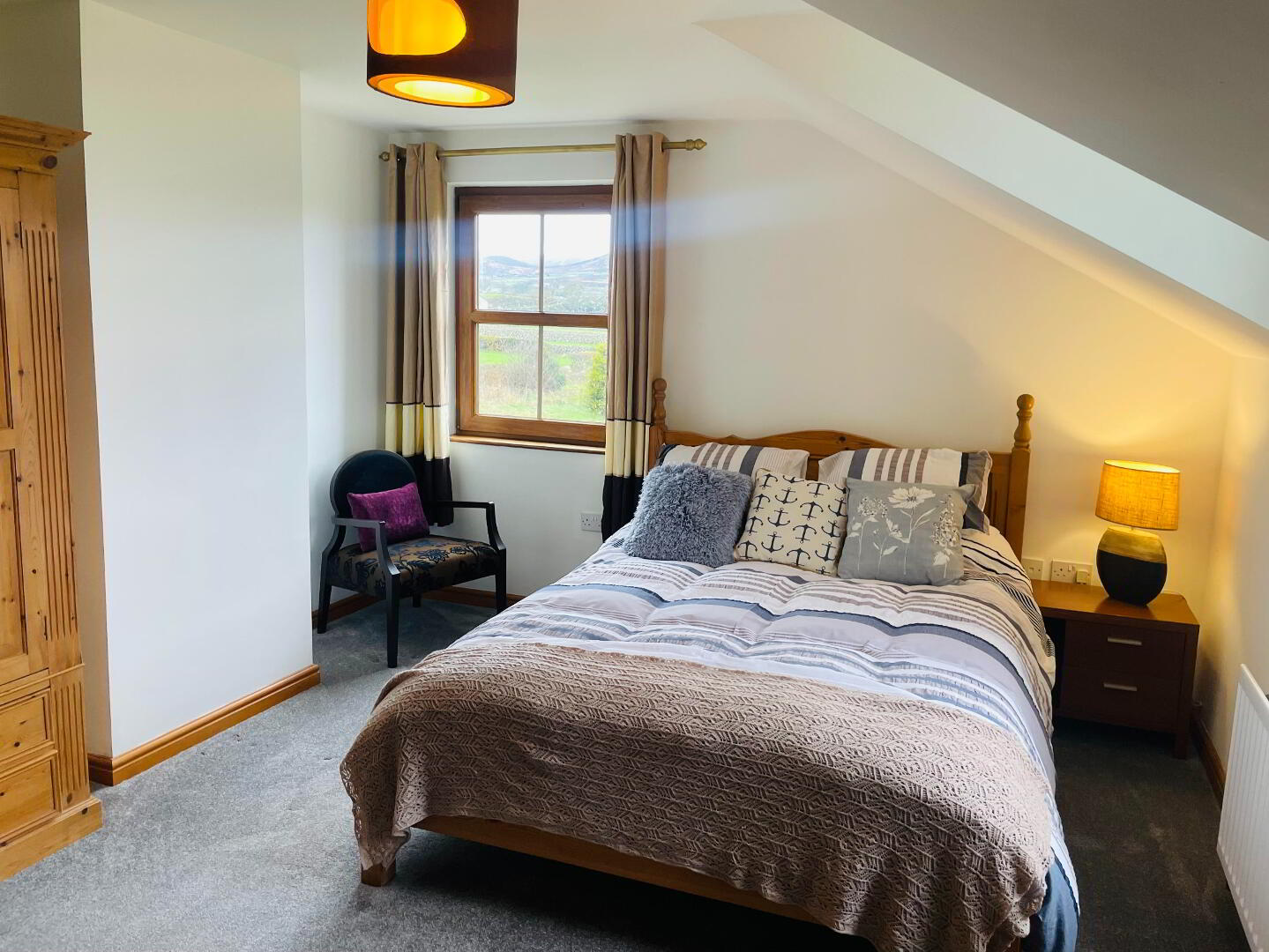 Leading off the Solid Oak Staircase, this hallway is graced with lots of natural light with a large window that is embracing the views into Annalong Village and such an idyllic setting to sit and watch the waves on the Irish Sea! Carpet flooring.