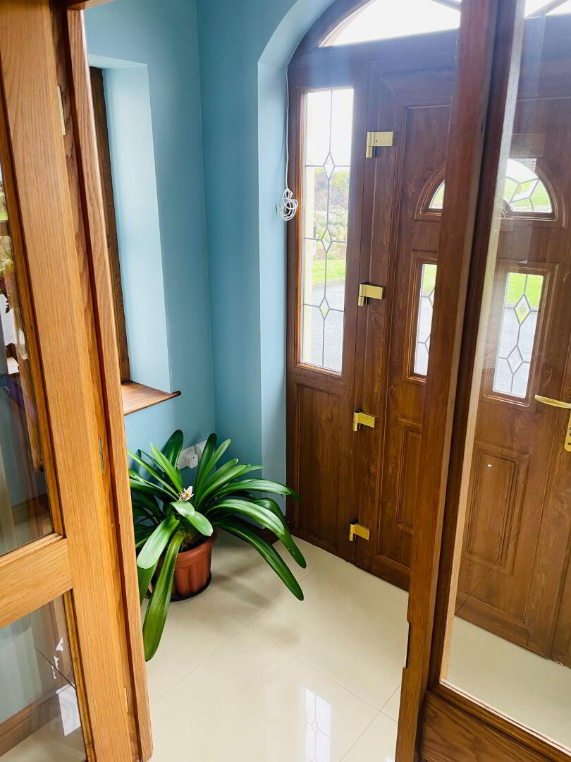 PVC Front door with glass inset and side glass panels. Tiled flooring, side windows, electrical plug sockets and Telephone point. Leading onto a secondary Solid wooden door complete with glass inset and glass surround