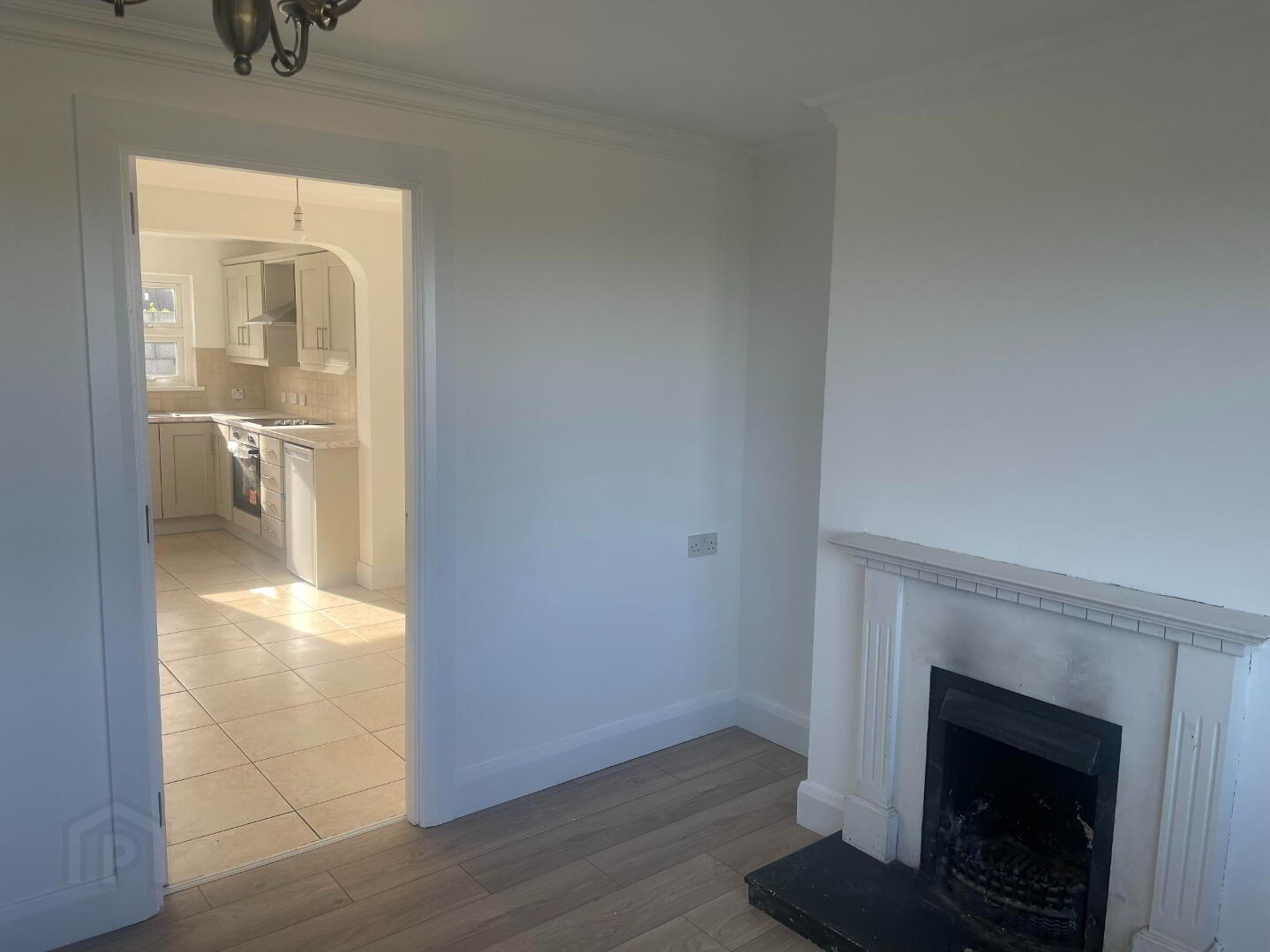White PVC Front door, Newly fitted laminated flooring, side wall lighting and Single Radiator