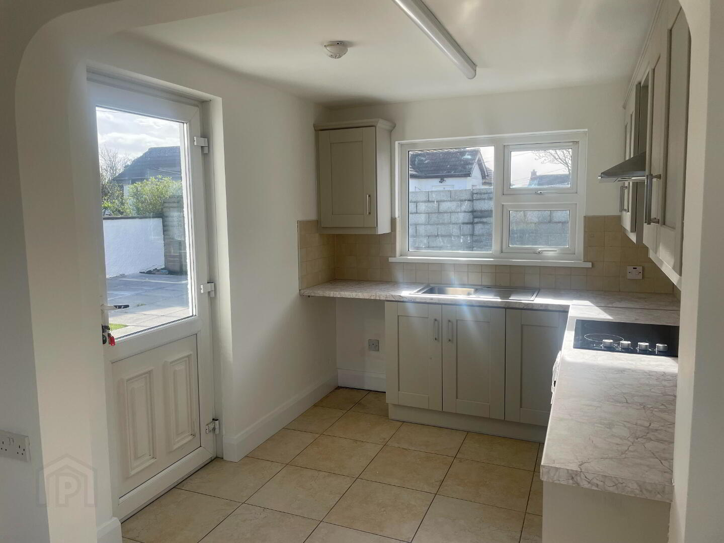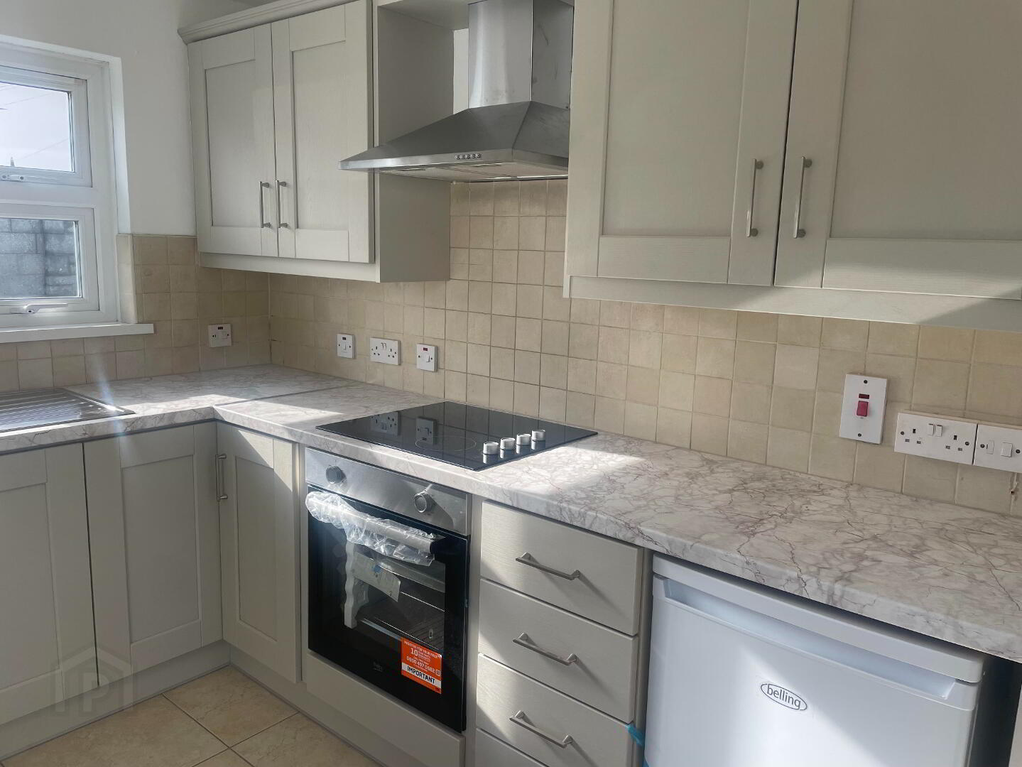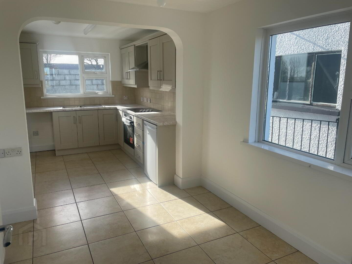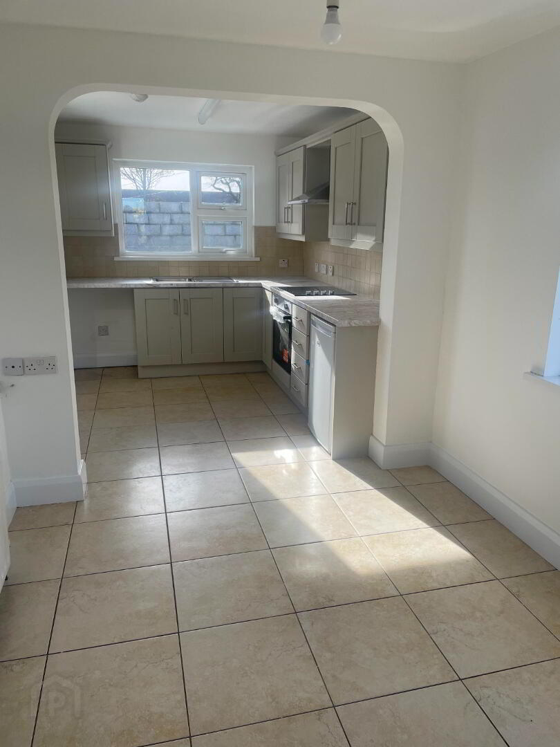 Brand new stunning Mink Coloured kitchen to include high and low fitted units complete with Brand New Beko Oven and Hob with Stainless Steel Extractor Fan over. Stainless steel sink and side drainer. Plumbing for washing machine and under counter fridge/freezer. Rear PVC Back door. Tiled floor and partially tiled walls under the upper units. Double radiator. Heating control panel.