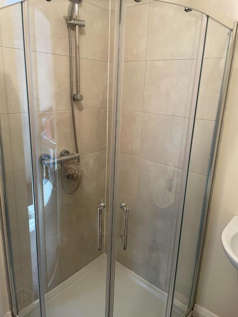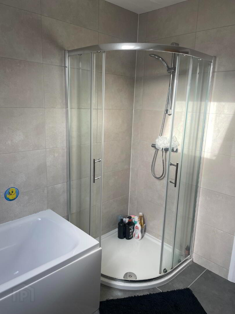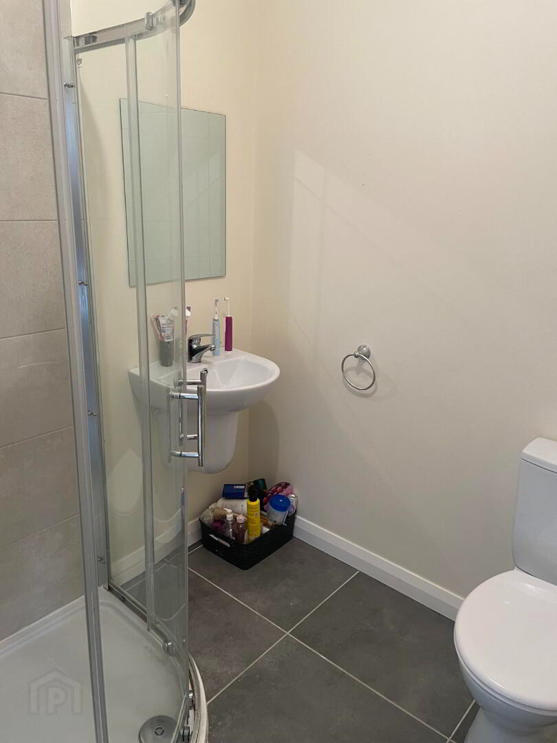 Three piece suite to include, WC, Wash hand basin and Shower with Tiled surround. Tiled flooring, single radiator.