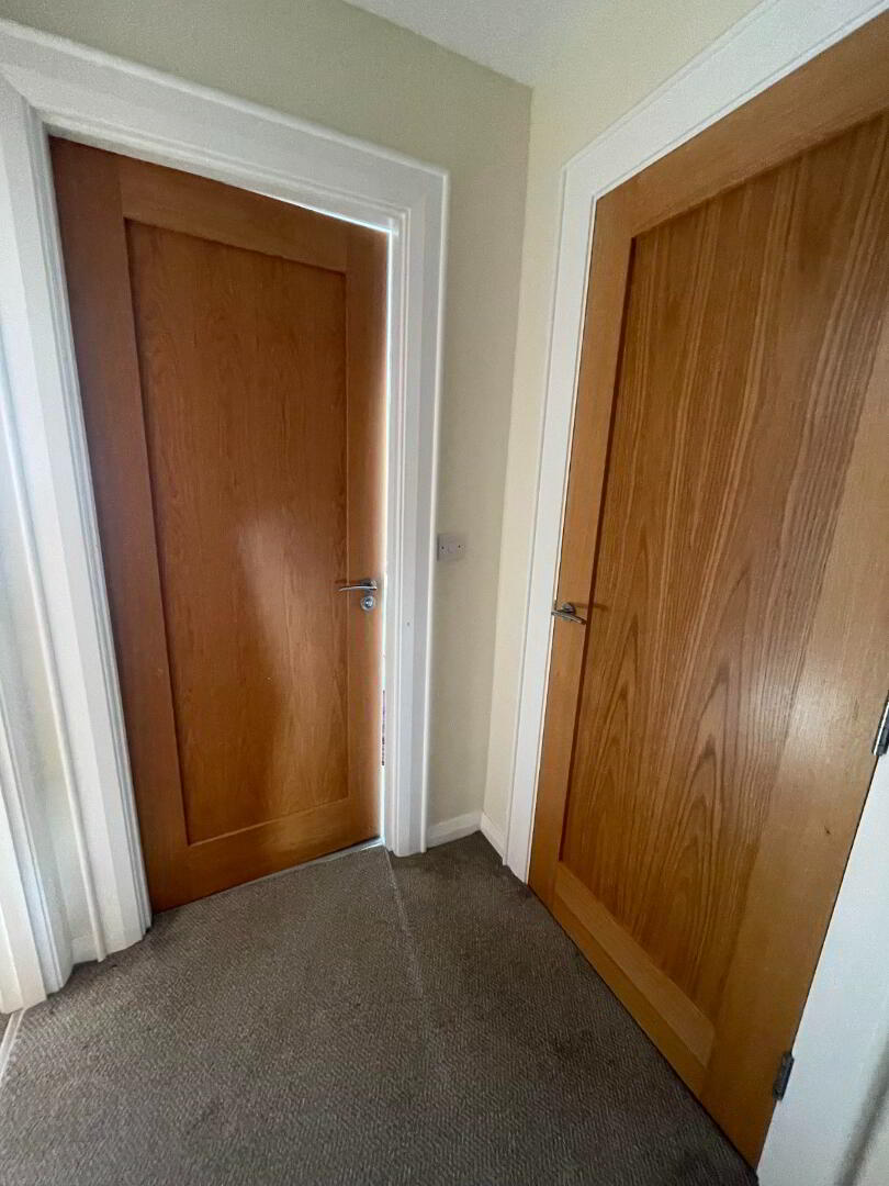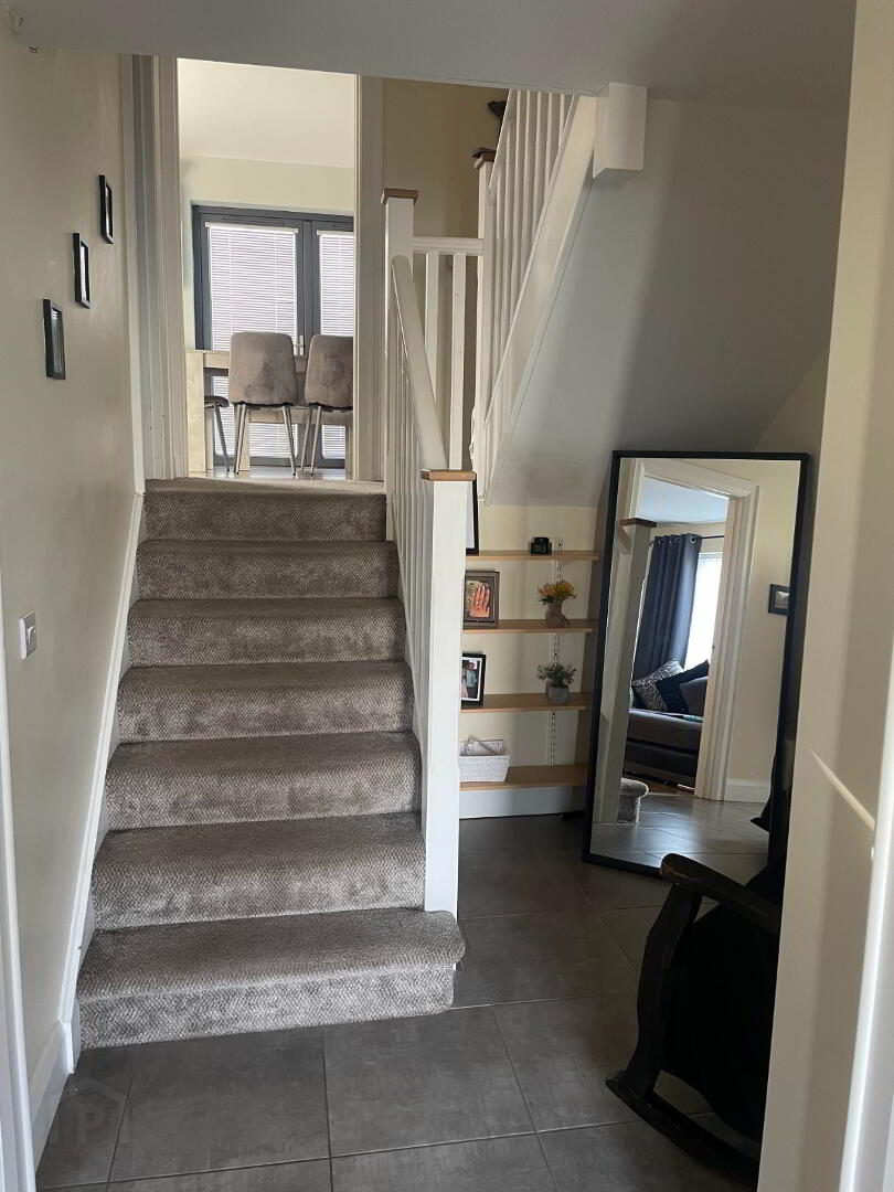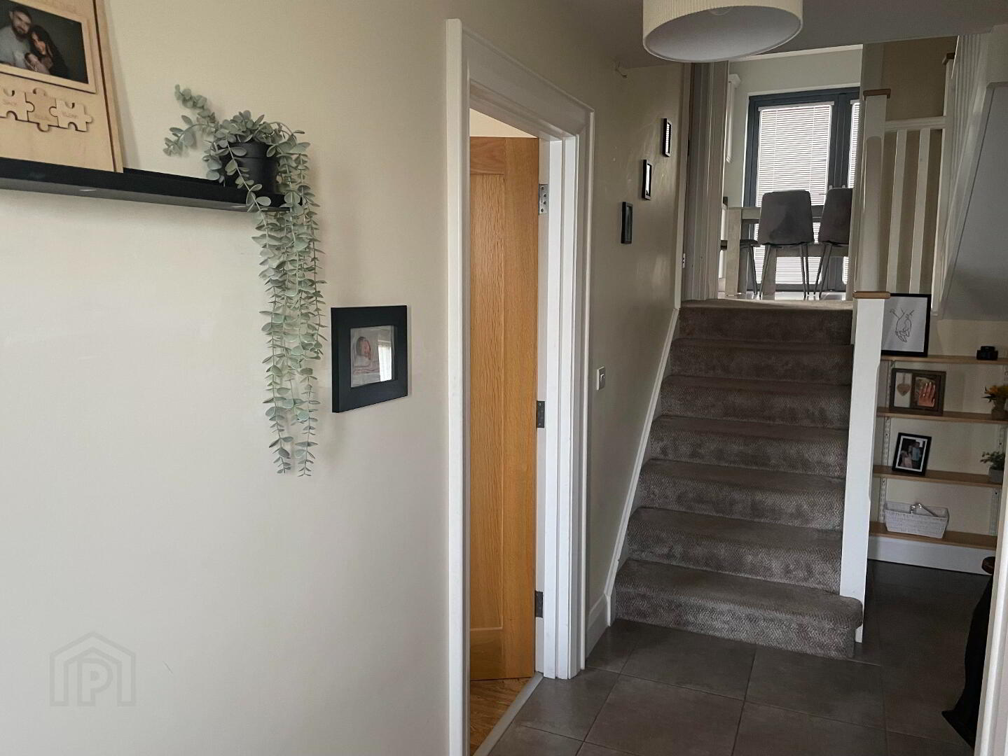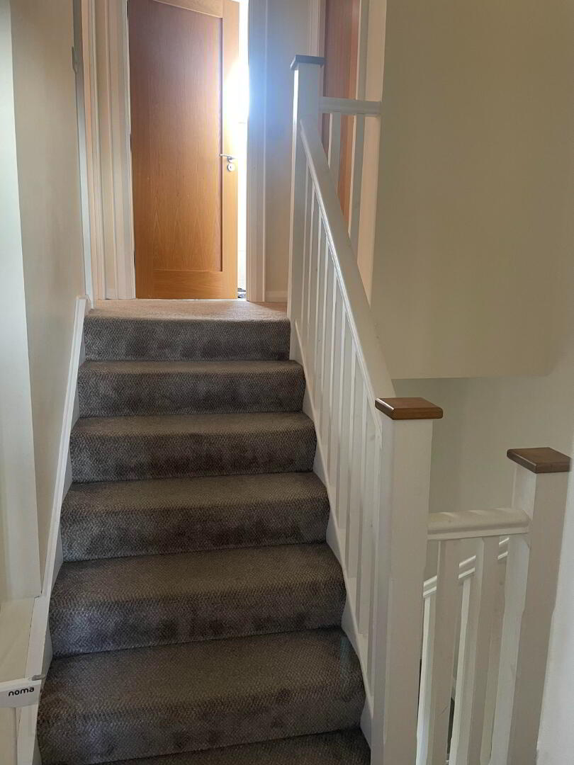 Composite Yellow front door, Tiled flooring with open area under the stairs, Double radiator. Carpet staircase.