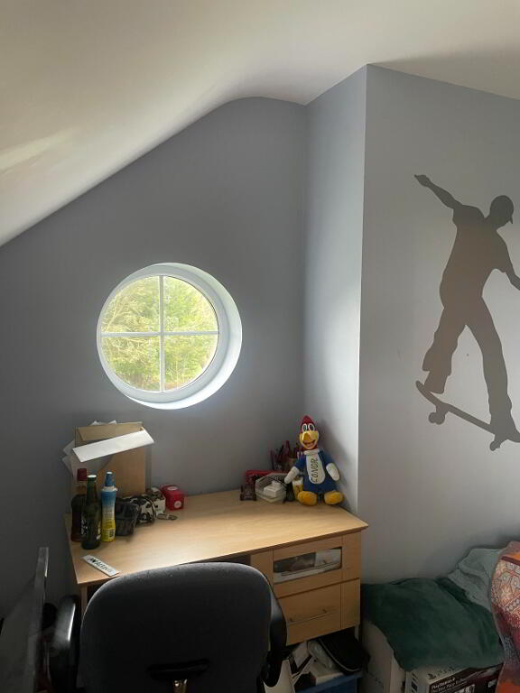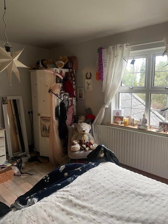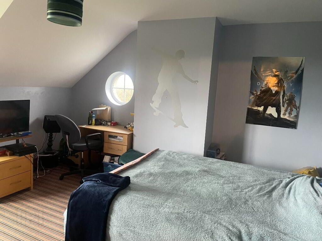 Stunning front and side views, carpet flooring, single radiator, side Circle window offering a nice feature in the room. Built in, walk in wardrobe