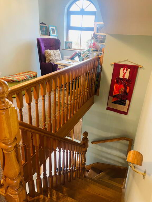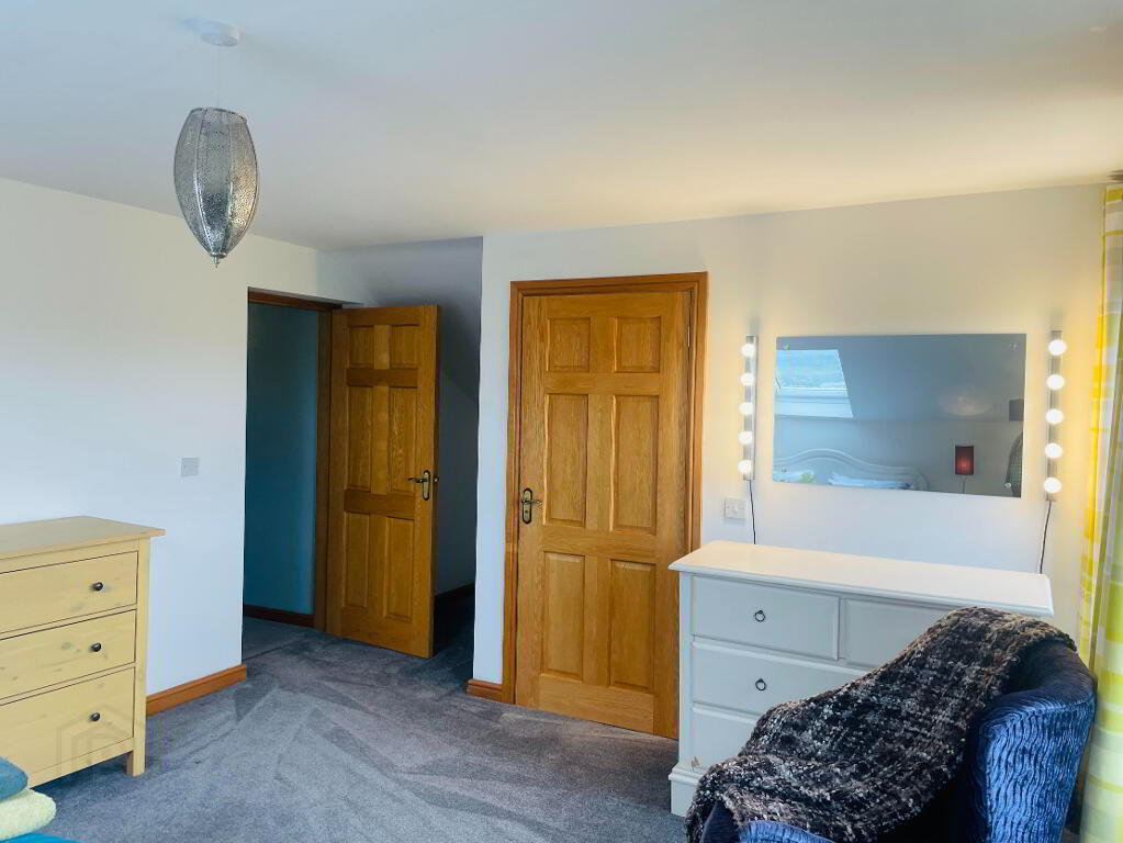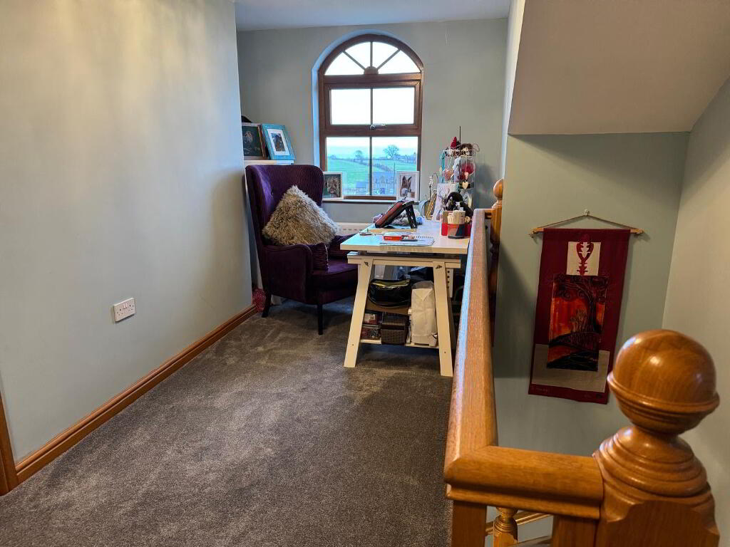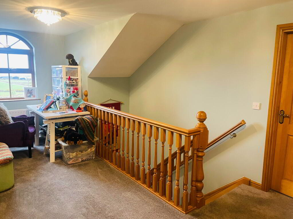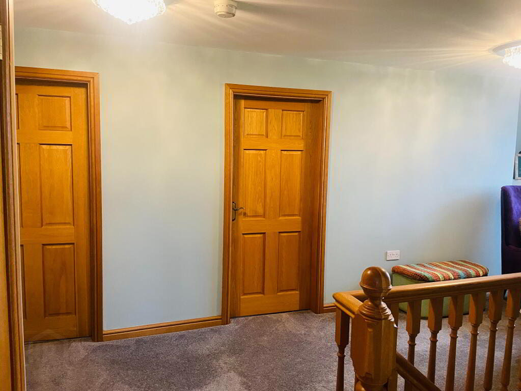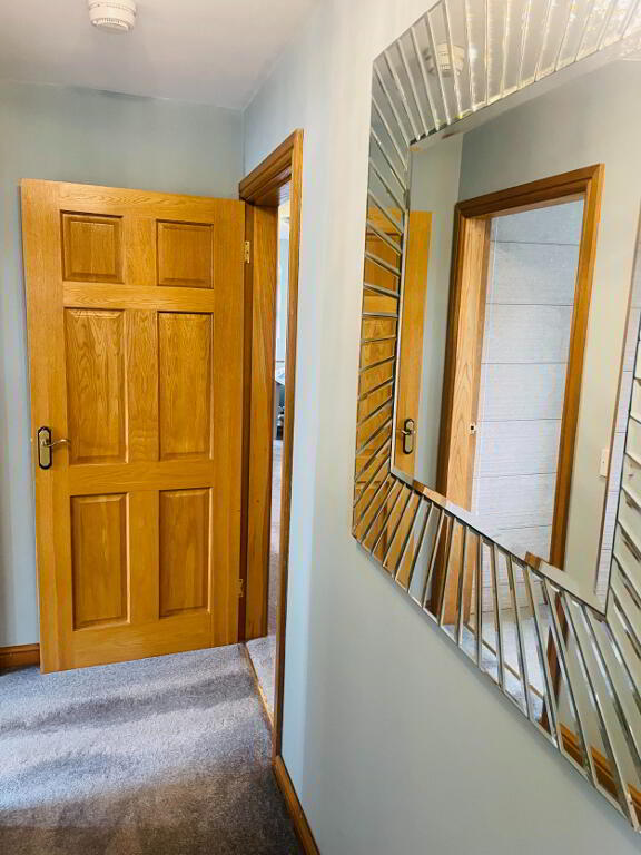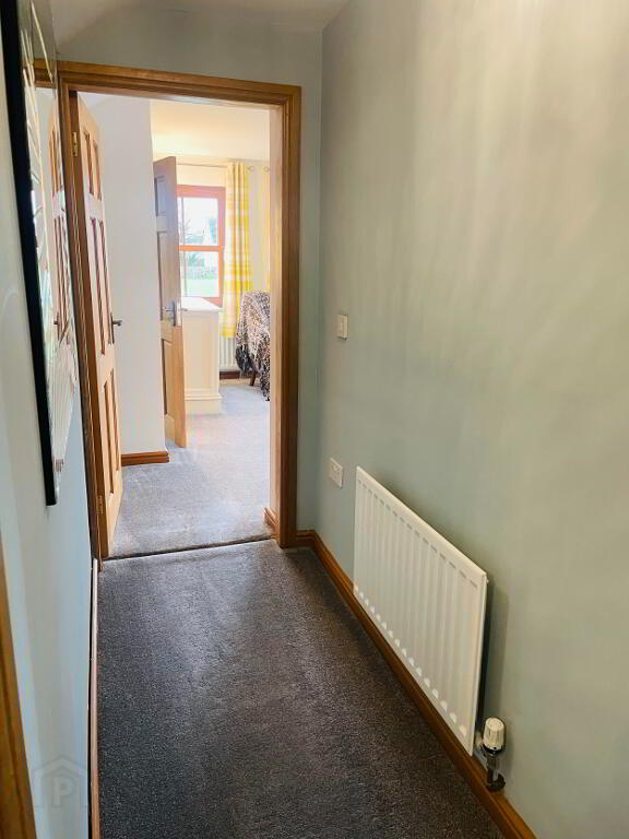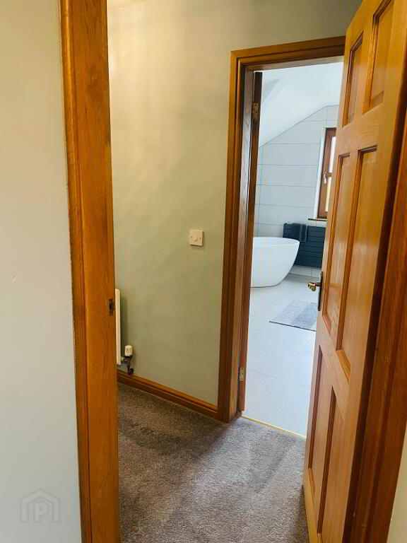 Leading off the Solid Oak Staircase, this hallway is graced with lots of natural light with a large window that is embracing the views into Annalong Village and such an idyllic setting to sit and watch the waves on the Irish Sea! Carpet flooring.