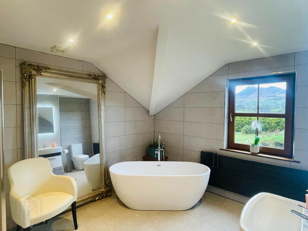 Located in an Area of Outstanding Natural Beauty is this prestige family home set idyllic in the heart of the countryside with sweeping views of rolling emerald hills, dramatic Mourne Mountains peaks, and the shimmering expanse of the sea beyond, this elite luxury residence represents the pinnacle of refined living. Originally constructed in 2007, but internally re-modeled, re-refurbished and occupied in 2013 Designed to harmonise effortlessly with its breathtaking natural surroundings, the home showcases impeccable craftsmanship and has been finished to an exceptional standard throughout. From the moment you step inside, you are greeted by great family living accommodation, lots of large windows that flood the interiors with natural light, and bespoke finishes curated with uncompromising attention to detail. The gourmet kitchen features custom cabinetry, and exquisite stone surfaces, flowing seamlessly into elegant reception spaces ideal for both grand entertaining and intimate gatherings. Lavish bedroom suites offer tranquil retreats, complete with spa-inspired bathrooms and all offering uninterrupted mountain and sea vistas. Outside, beautifully landscaped grounds frame the property, creating a serene sanctuary of privacy and prestige. This is more than a home—it is a statement residence, offering an extraordinary lifestyle in one of the countryside’s most captivating settings right. These photos do not justify what is on offer here and a viewing is highly recommended by Appointment only.