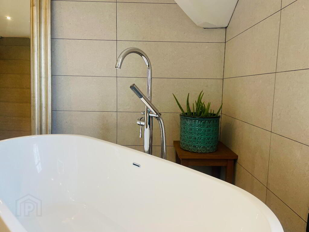 Luxury Bathroom complete with a Four Piece suite, Walk in shower with Rainfall shower head and smaller shower hose, Dual flush WC, Wash hand basin with vanity drawers under. Freestanding large bath to melt away the stresses in life with Waterfall taps and separate shower head. Underfloor heating with Thermostat control, Elegant tiling to the floors and walls. Shaver point, extractor fan, spot lighting and Chrome Towel radiator.