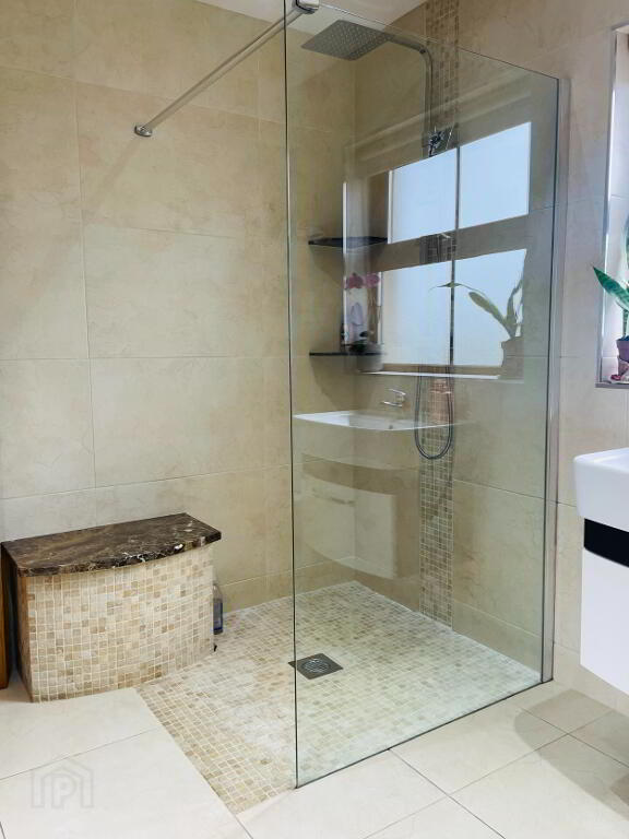 Ensuite: Fully tiled walls and flooring, with decorative design tiling in walk in shower, Dual flush WC, Wash hand basin with vanity drawers under, Chrome Towel Radiator, heated LED Mirror, Extractor fan.