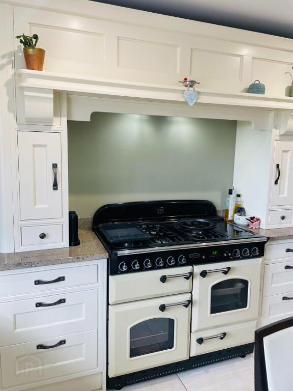 'The Heart of the Home' with large open plan space, with Stunning High and Low 'Shaker' style Bespoke Kitchen completed in a Cream and Duck Egg Blue finish with Granite work top. This would be every home Bakers dream, with a Rangemaster oven, Gas Hob with rings, hot plate and large Wok ring. Rangemaster 'Belfast Sink', Integrated Bosch Dishwasher, recycling drawer. Larder style cupboard. Beautifully pointed tiled flooring complete with underfloor heating. Spotlighting. USB Plug sockets.