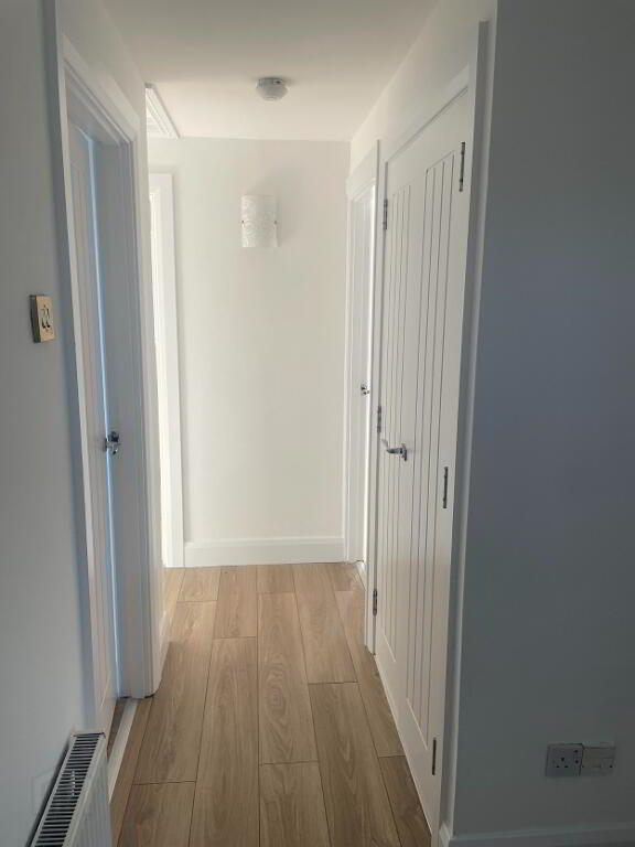 White PVC Front door, Newly fitted laminated flooring, side wall lighting and Single Radiator