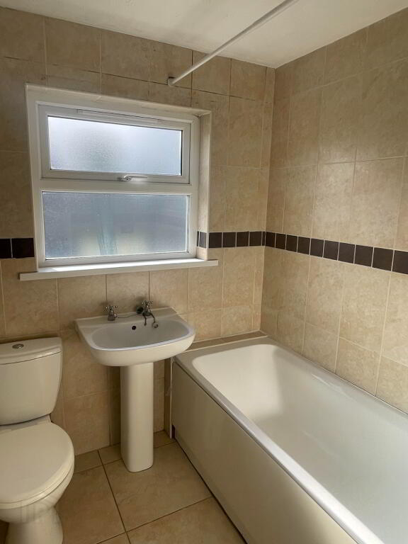 Three piece suite to include WC, Wash hand basin and Bath with Electric ' Redring' Shower over. Fully tiled floors and walls. Extractor fan. Radiator.