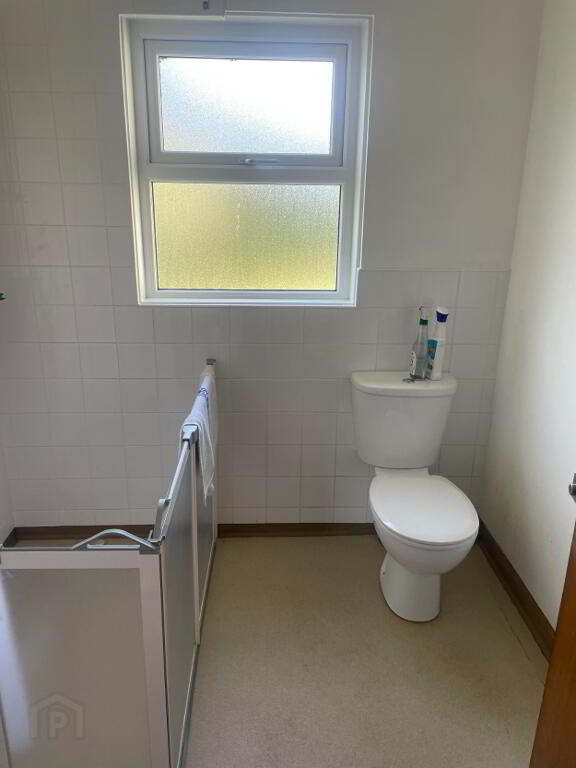 Three piece suite to include WC, wash hand basin and walkin Electric 'Triton' shower. Extractor Fan. Tiled walls.