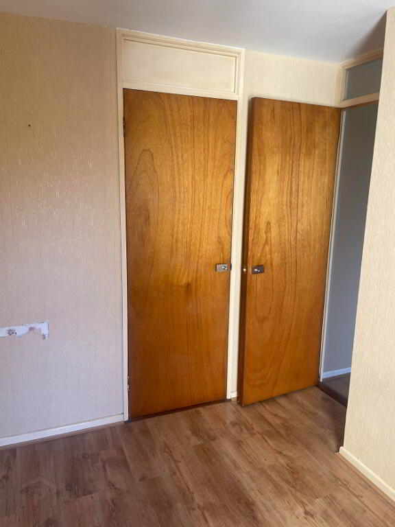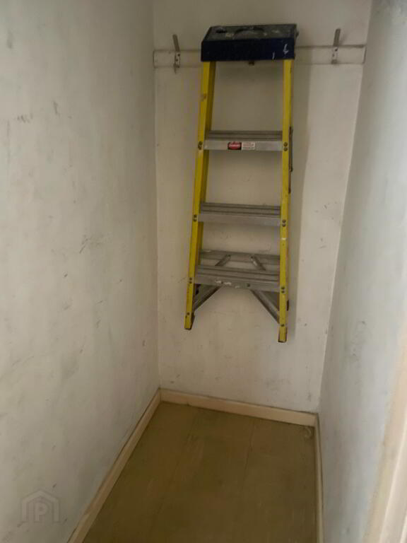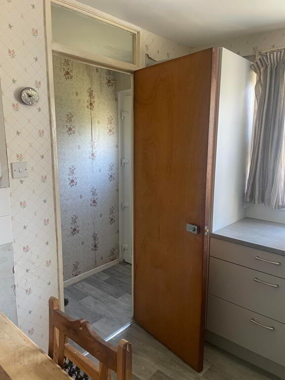 White PVC Front door with privacy glass inset to the side. Laminated flooring, Single Radiator. Large walk in storage room with cloak hangers