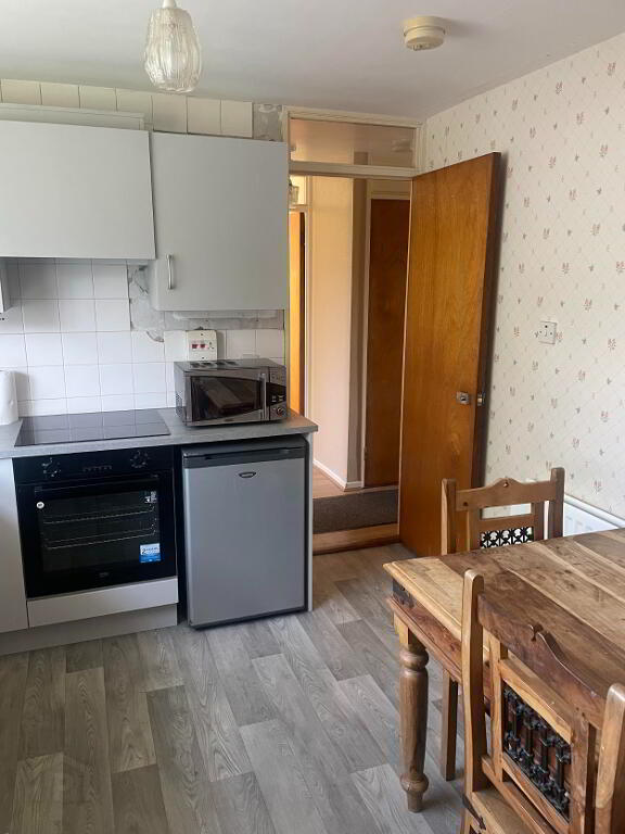 Newly fitted high and low Grey Kitchen with tiling under the top units. Brand New Beko Oven and Beko Hob with Extractor Fan over. Large window with rear view aspect. Double Radiator and Vinyl flooring.