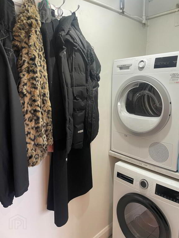 Open plan area under the stairs area which has been plumbed for washing machine and tumble dryer. Programmer for heating.